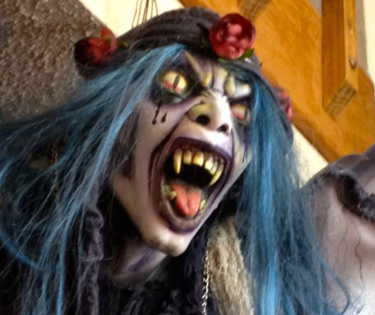 Bob’s house is intentionally creepy.  It is filled with vampires, witches, spiders and other symbols of the holiday.