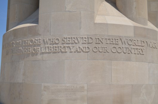 No visitor can reach the museum without first confronting the Liberty Memorial Tower, which sits immediately above the museum, and which is dedicated to the the “Honor of those who served in the World War in Defense of Liberty and our country”.