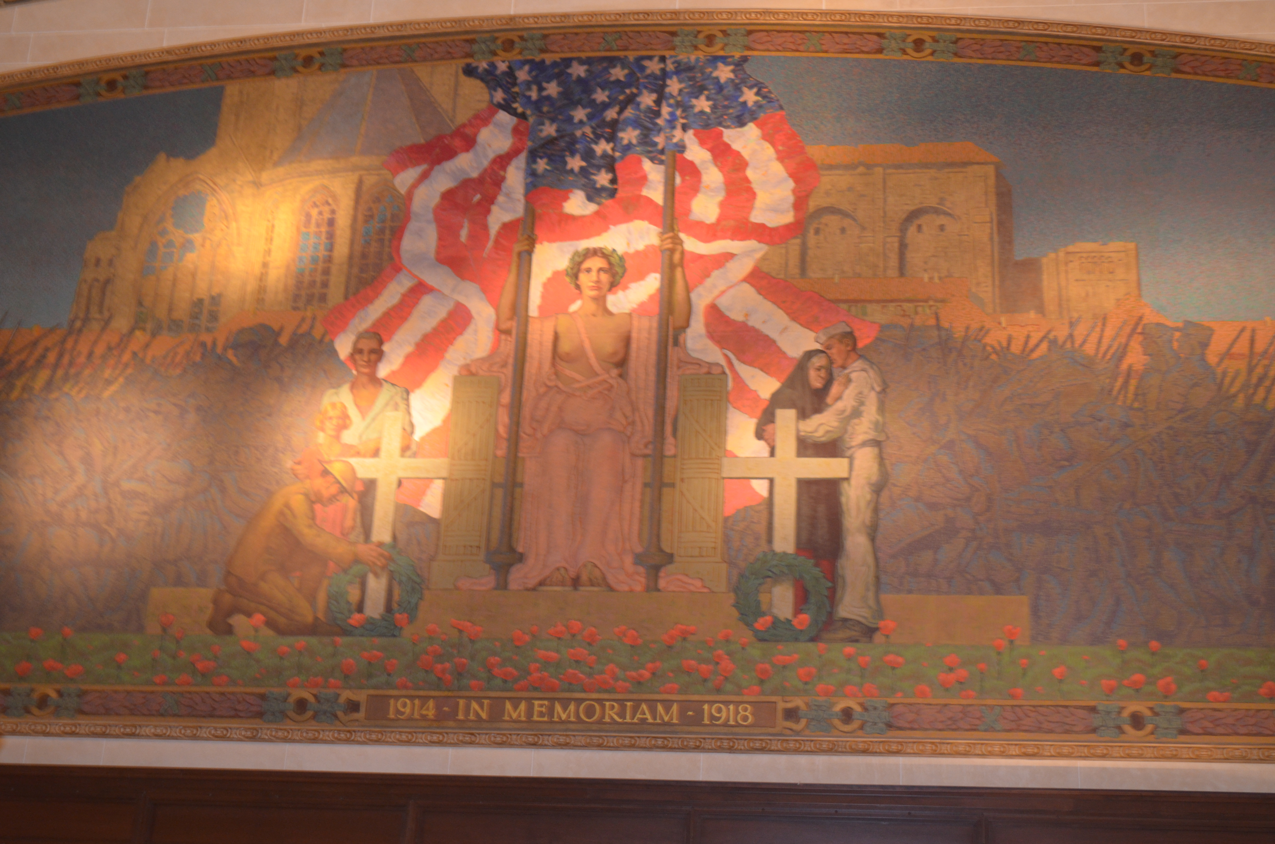 There are life-sized murals which can only be described as glorifying, if not war, than the strength and power of those who are successful in war.