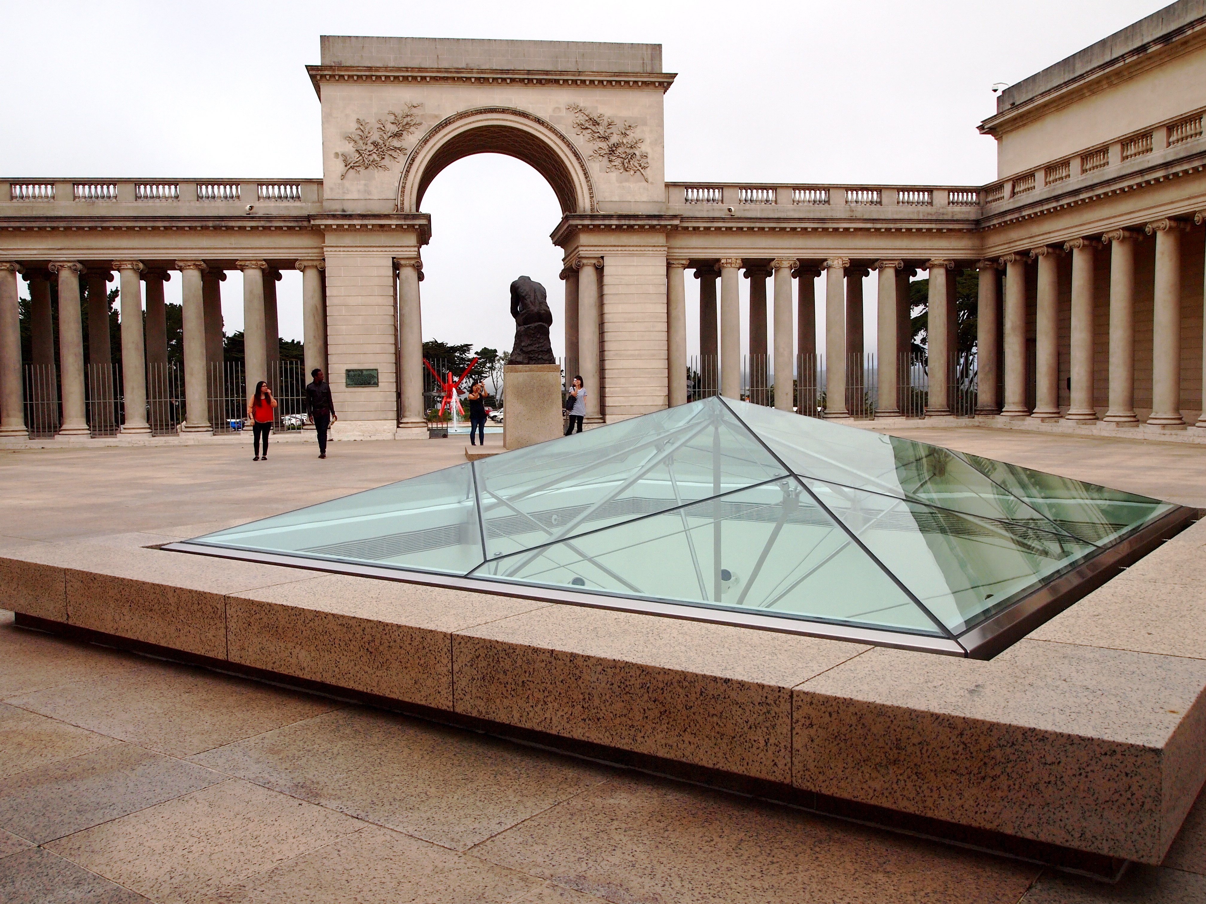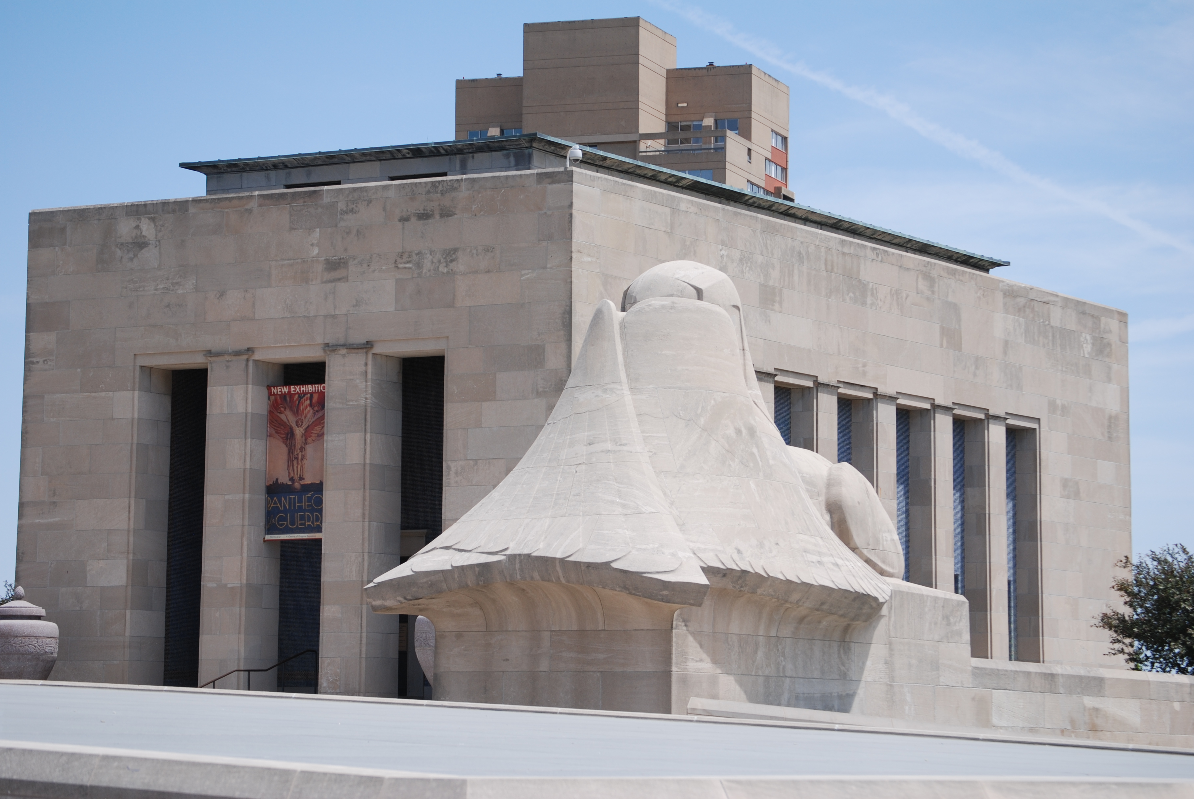 On either side of the tower are two giant sphinxes with wing like coverings concealing their faces, as though they are, themselves, traumatized by the reality of war. Two concrete buildings sit behind the sphinxes, themselves housing exhibits for the museum.