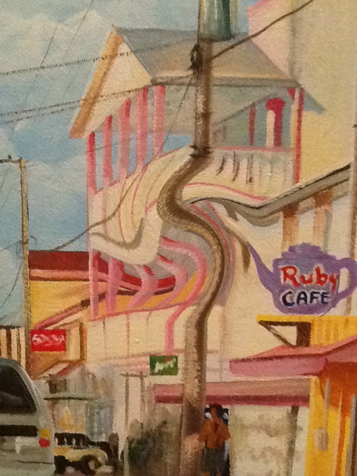 It is a wonderful carving but other than the dealer’s story, I had no real understanding of his significance. Technically, he is a “wood & polychrome” statue, meaning only that he is painted in a variety of colors. It is obvious he has been repeatedly repainted, suggesting only that he is not new and, perhaps, that he was designed more for utilitarian, than artistic, purposes.