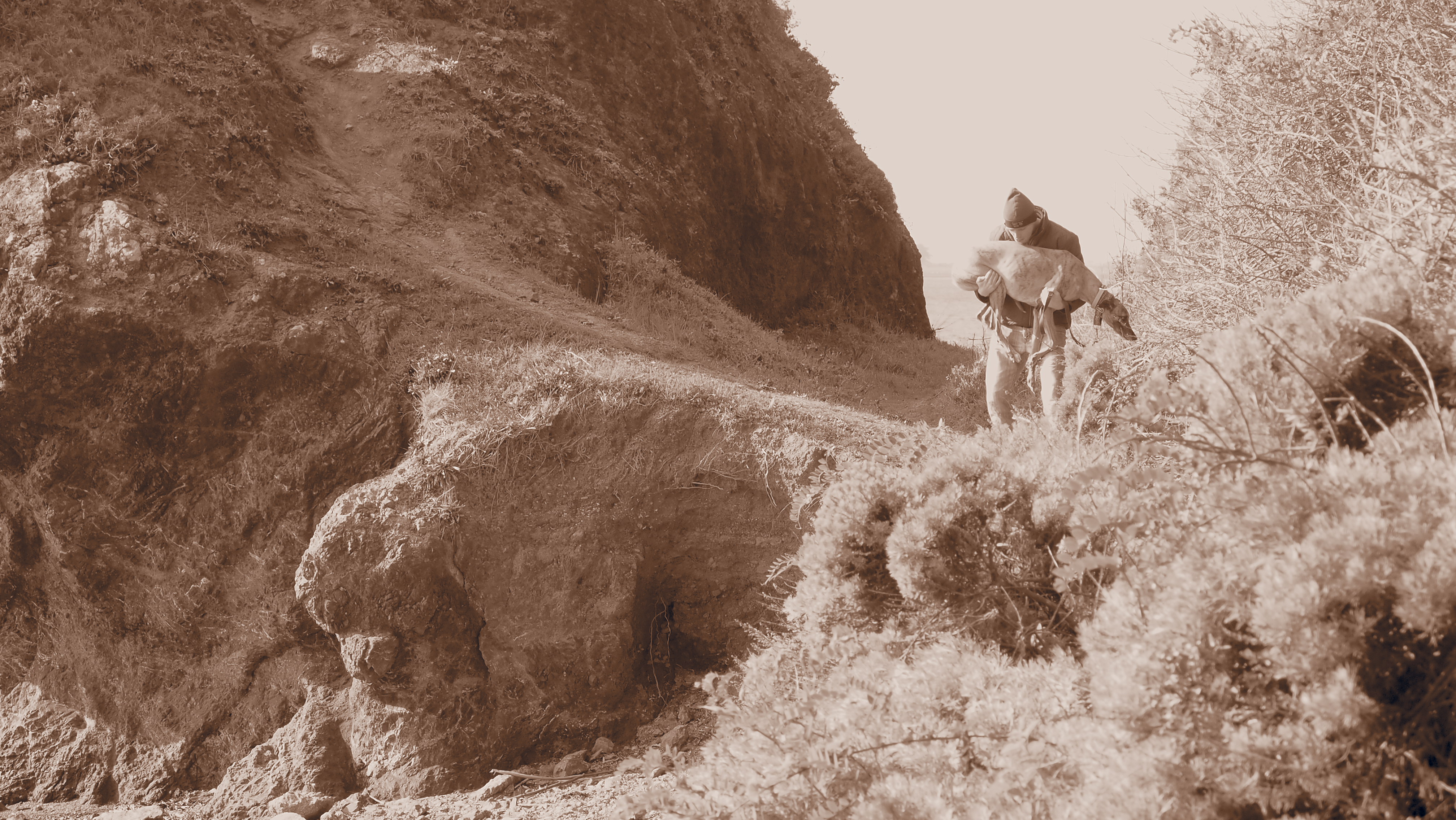 Looking south along the coast, toward the Bodega Head parking lot and whale watching area.