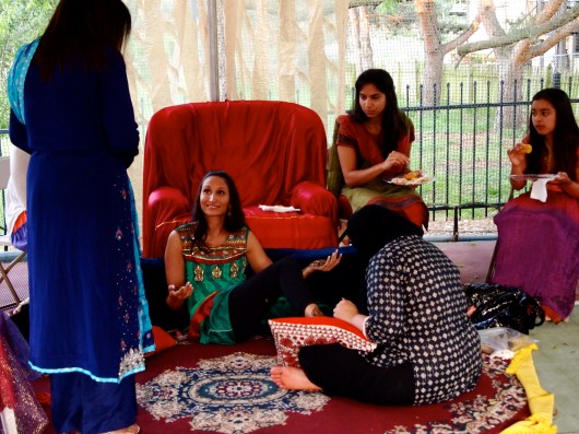 By this point in the wedding festivities, we have seen henna designs, skits, beautiful dresses, delicious food, a stunning bride (and groom!), and a Nikah wedding ceremony. Drumming introduced us to the second part of the wedding festivities on May 5th, 2012, when Noah rode in on a white stallion to the entrance of the reception hall. He looked very handsome in his traditional Indian ensemble, and very confident on the enormous white horse they had for him to ride!