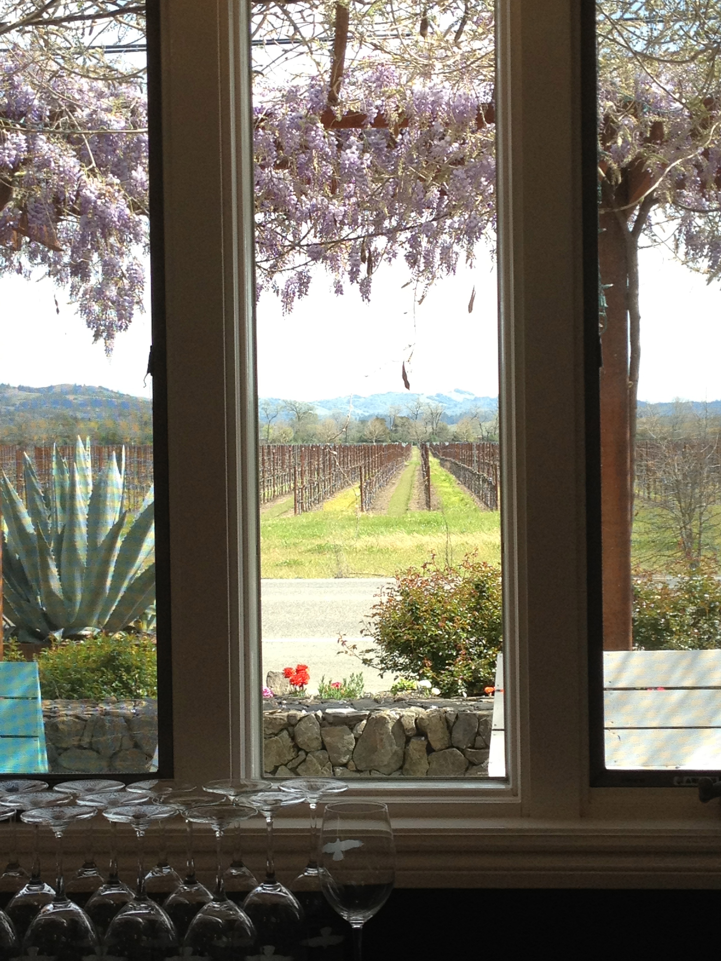We travelled on to Hawke Winery’s tasting room with its wonderful view of the Alexander Valley. The view was worth the visit. The vineyard out the window was owned by Kendall Jackson.