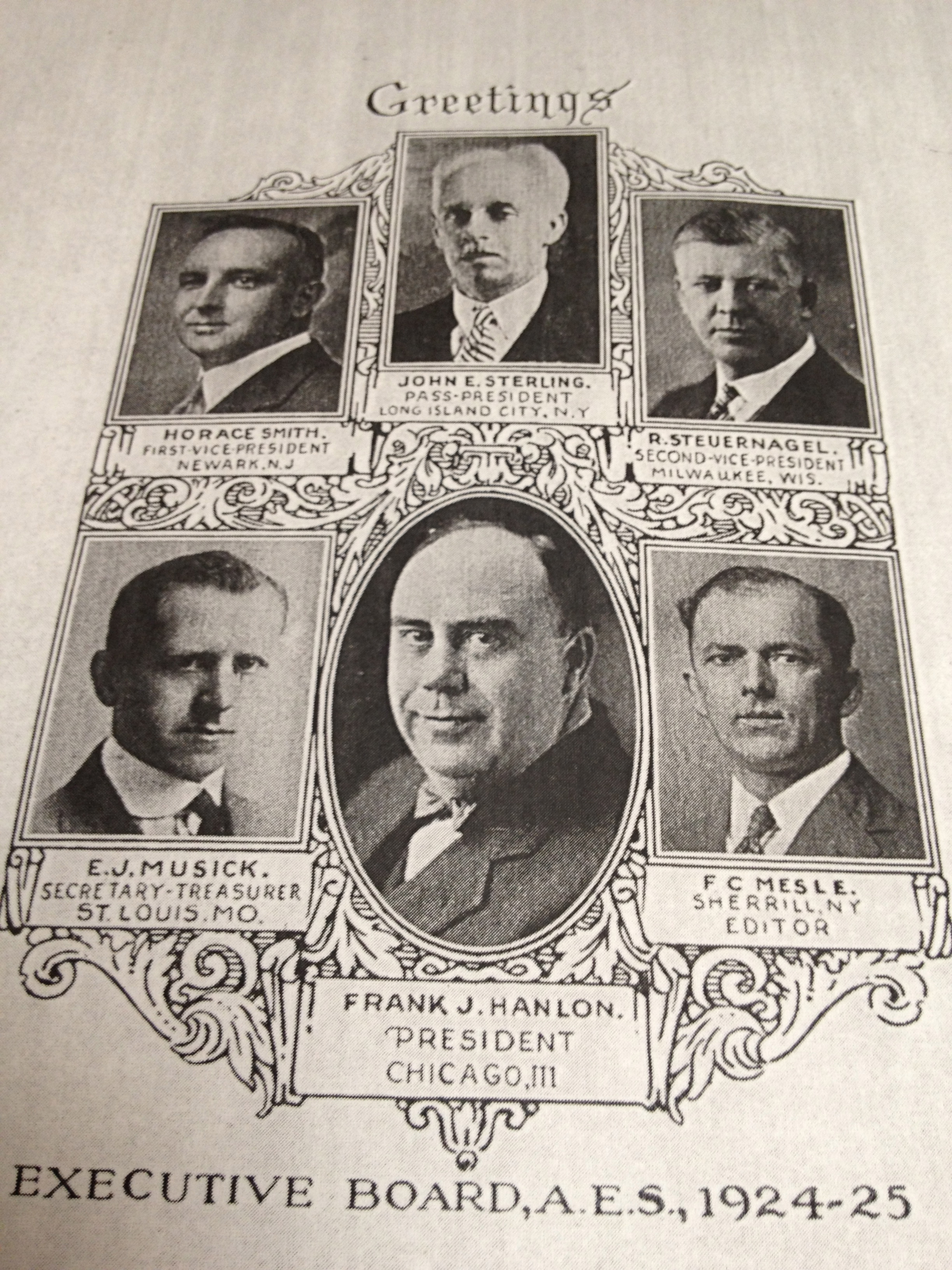 Frank was a pioneer in electroplating processes that revolutionized the production (and quality) of silver-plating. Ultimately, he rose to the position of Superintendent of the Plating Department. He directed silver plating of artillery shells in World War I and the silver plating of aircraft bearings in World War II. He served as Editor of The Monthly Review and in 1926 became President of the American Electroplaters’ Society. He received the Society’s Founder’s Gold Medal in 1929, 1938, 1940 and 1943. He received the key to the city of Toronto, Canada, during an international conference of electroplaters.