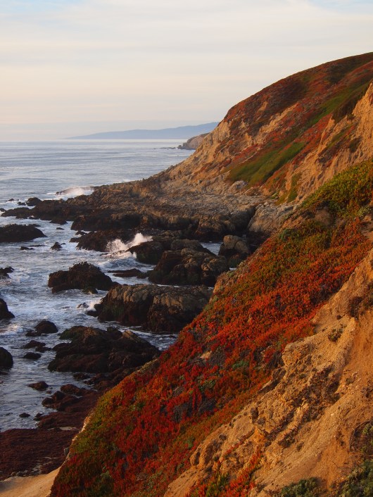 Oh, how I envy Meg’s California vistas. The ocean, the rocks and the shore. I haven’t even mentioned the vineyards.